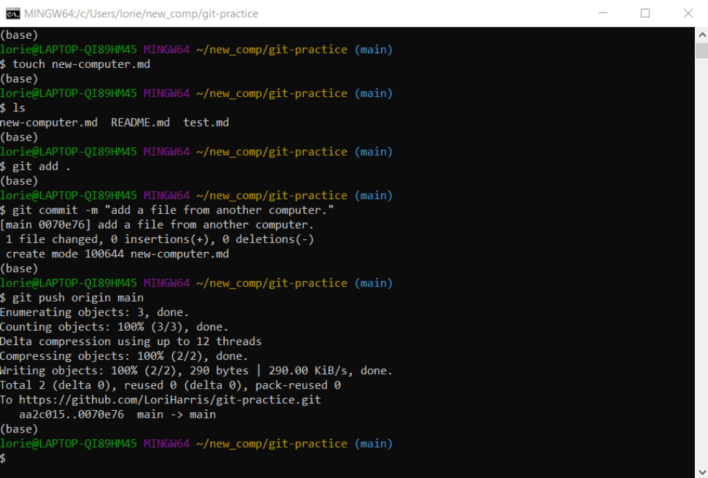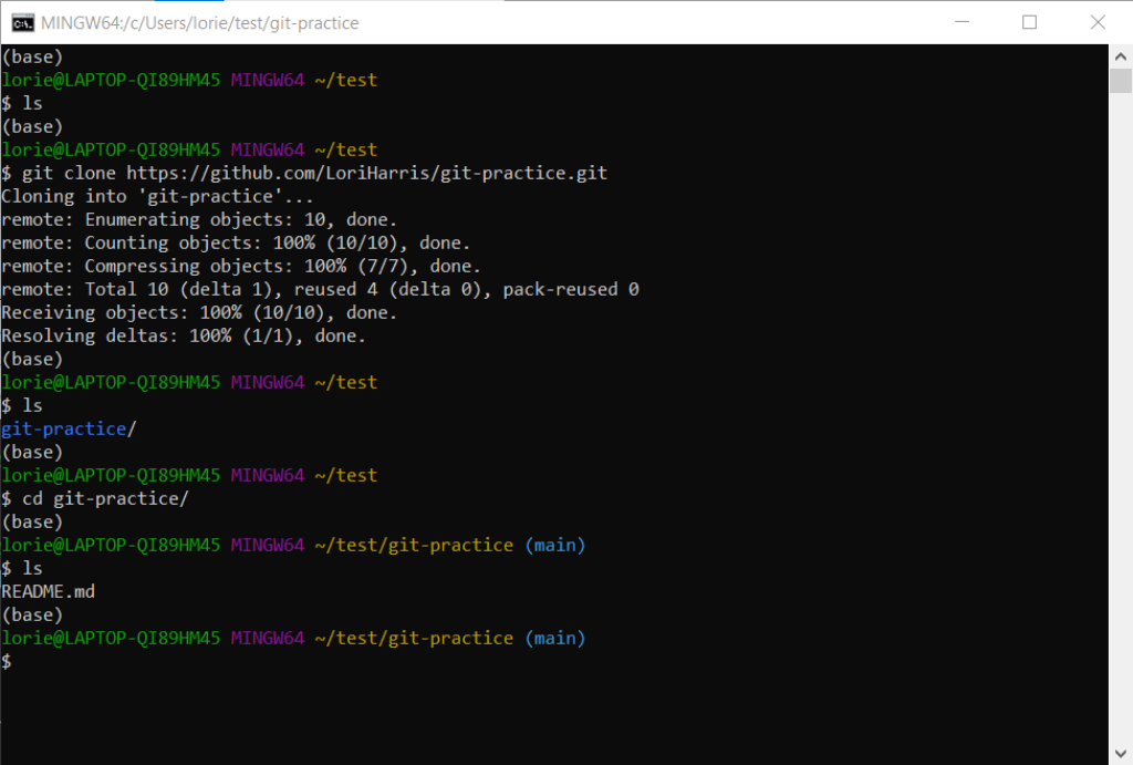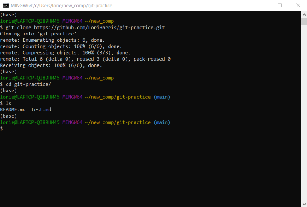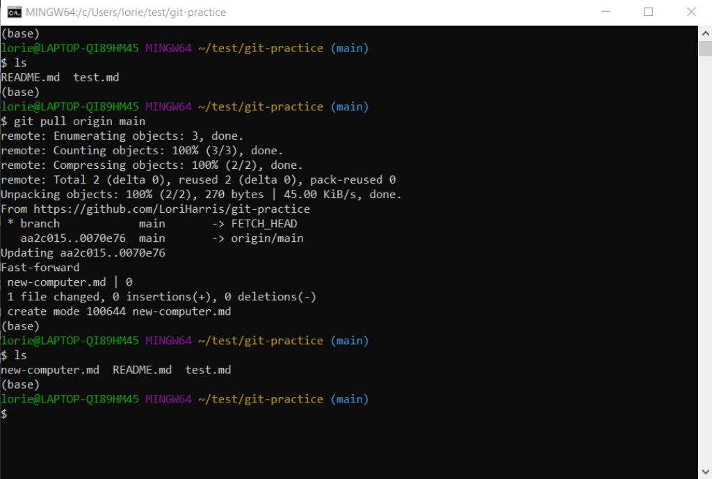 If you go back to your first directory, you can pull down the changes you made elsewhere. Navigate back to the directory you cloned in Step 4 and run git pull origin main.