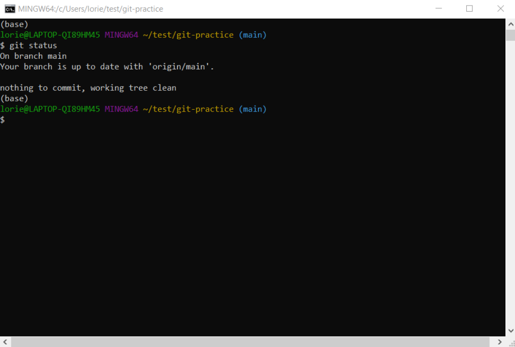 Check the current status of the repository by running the git status command, which should tell you that you’re completely up to date.