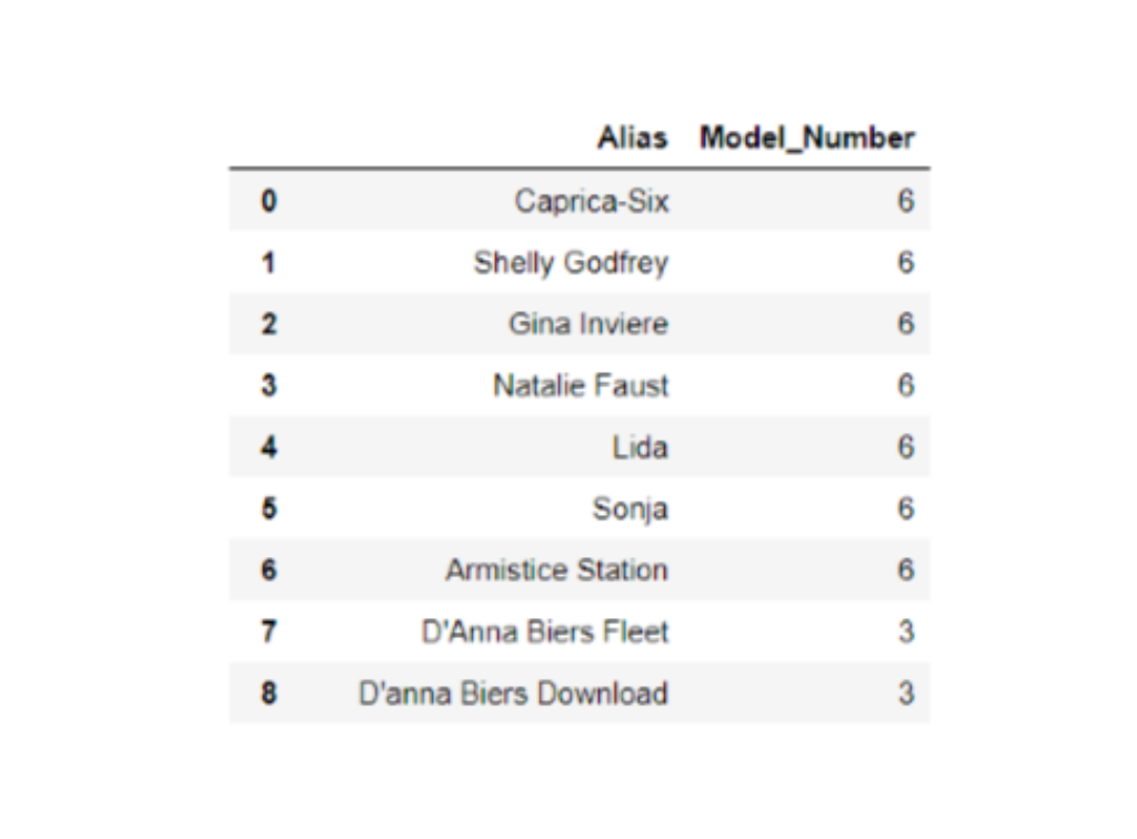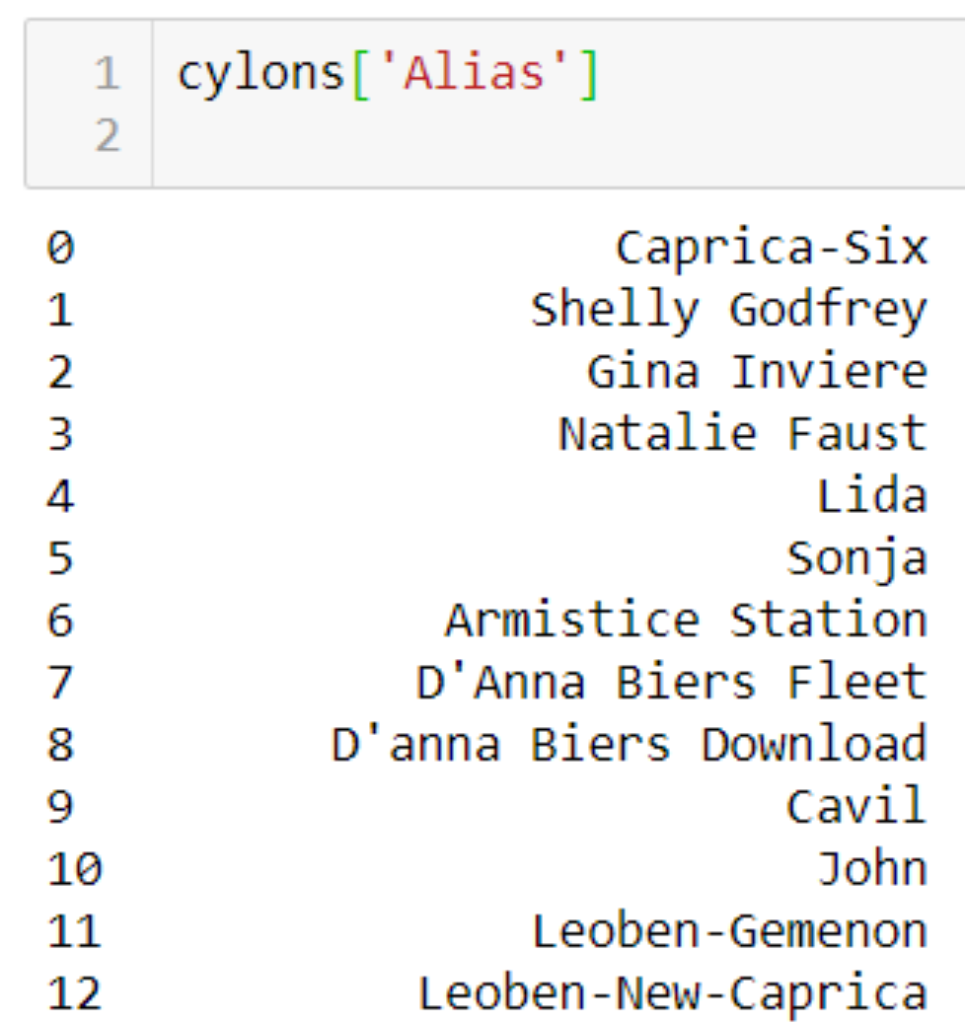 print(cylons.loc[i,'Alias'])