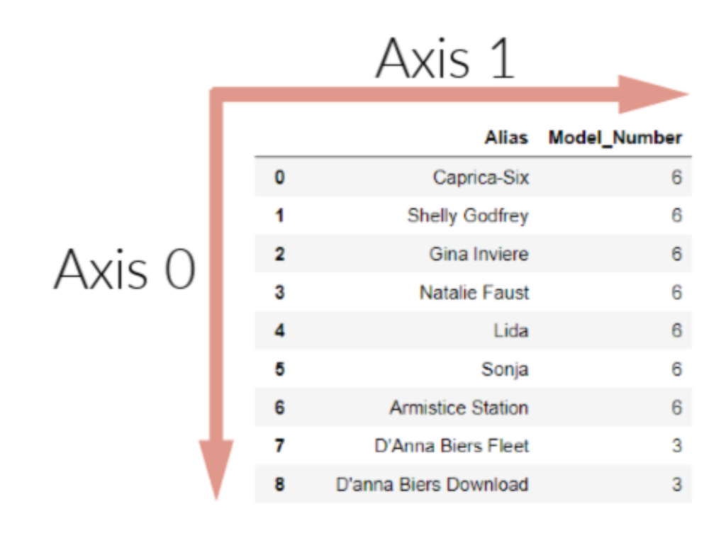 A DataFrame axis is simply the column headers or the row index positions. This image helps to visualize it:
